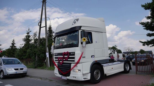 w drodze w kościoła na salę przed samochodem młodej pary jechało chyba 6 tirów, efektownie to wyglądało 🙂